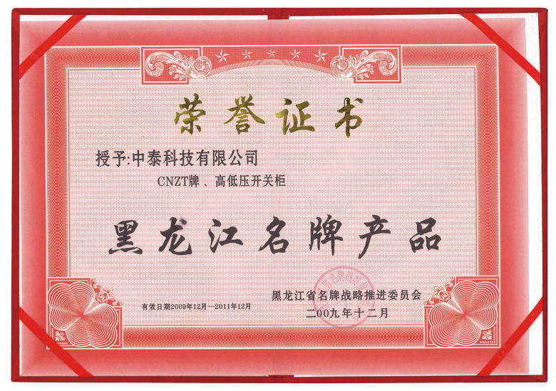 黑龍江**產(chǎn)品榮譽(yù)證書