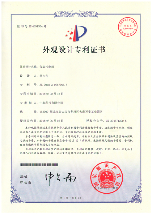 外觀設(shè)計(jì)專利證書