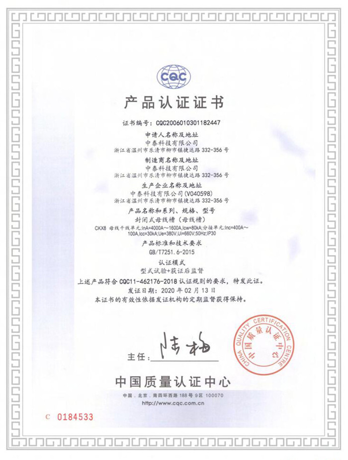 **質(zhì)量認(rèn)證產(chǎn)品認(rèn)證證書